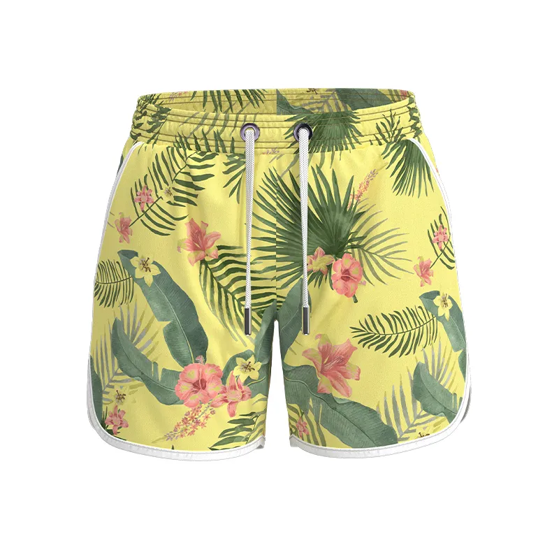 Style: men’s simple lace-up curved leg beach pants beach shorts