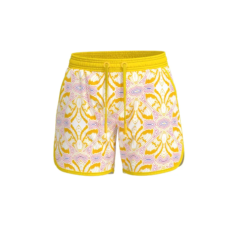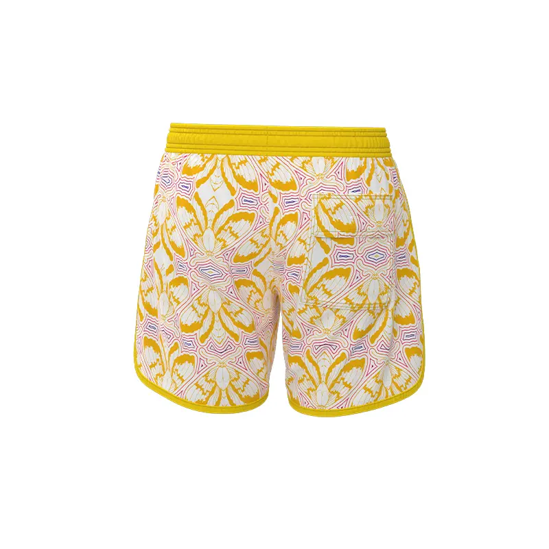 Style: men’s yellow floral print simple waistband elastic beach pants