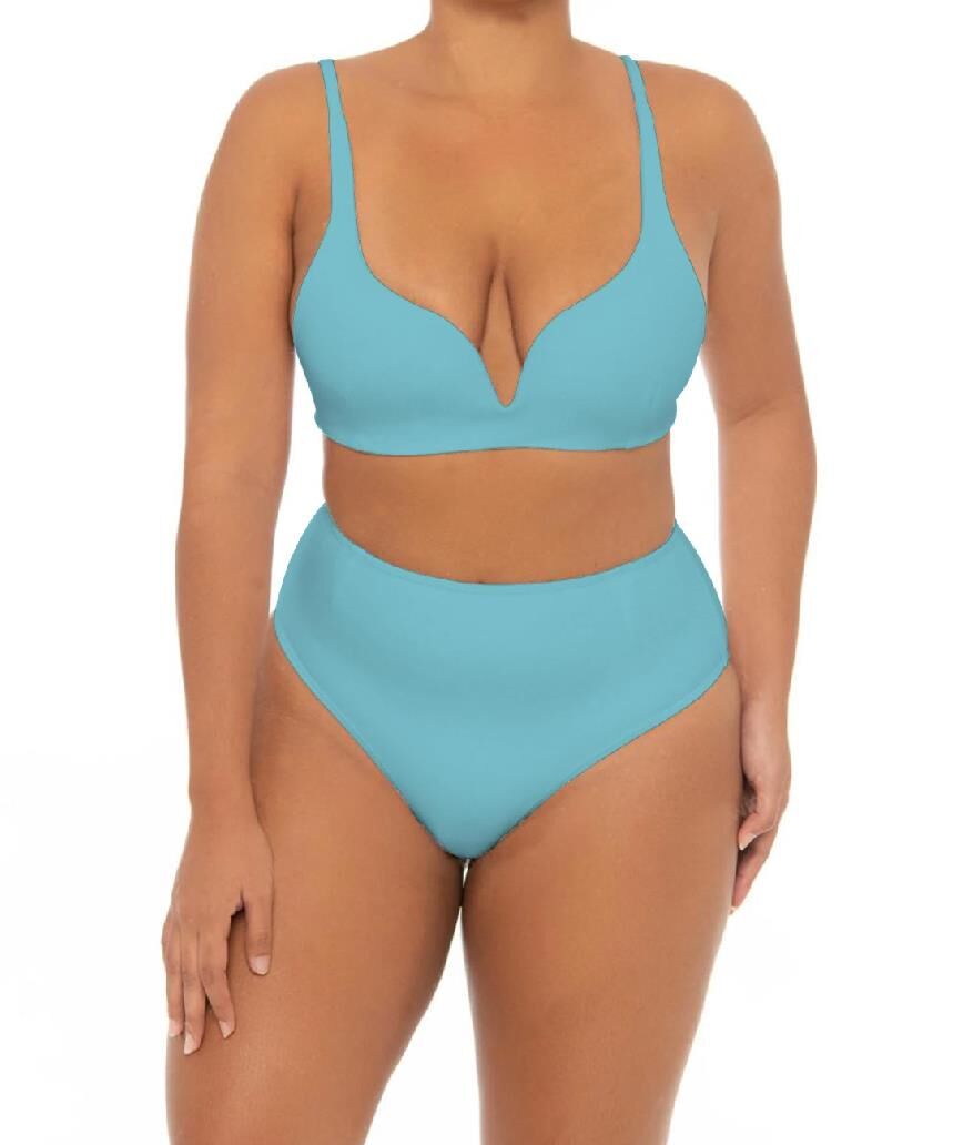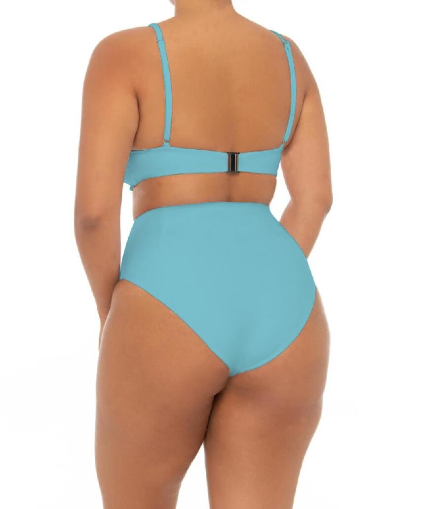 Fashion new style blue slim fit plus size womens bathing suit with high waist.