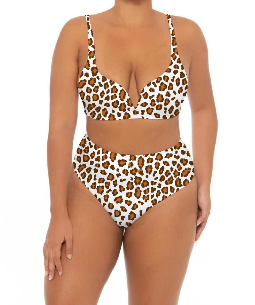 Plus size brown leopard print womens sexy stretchy beachwear fashion full printing bikini.