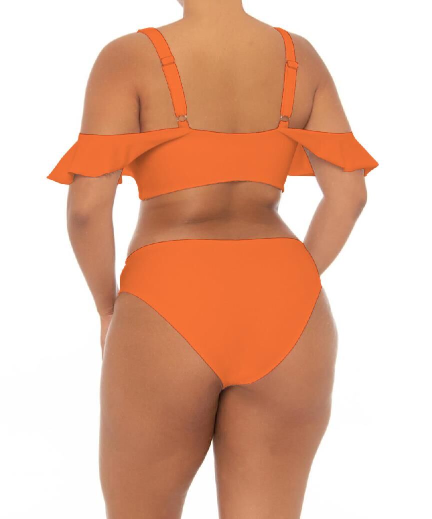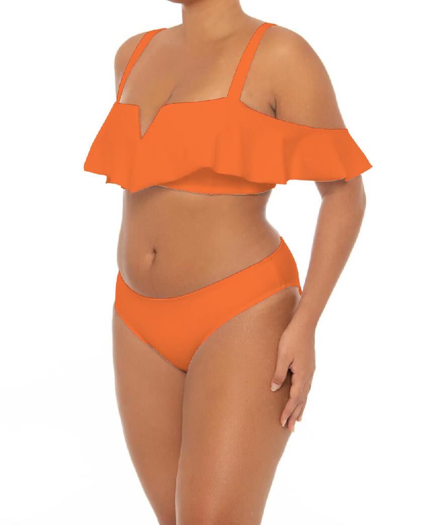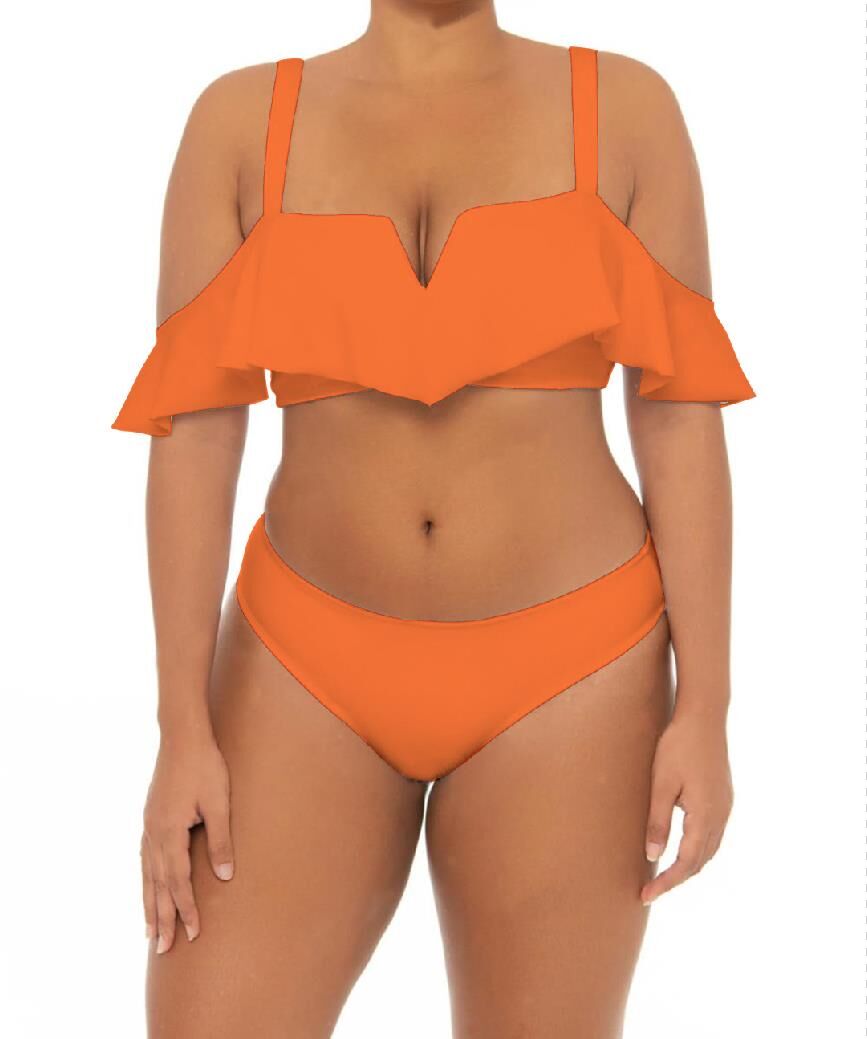 Wholesale custom fashion swimwear sexy ruffle trim bathing suit orange two pieces.