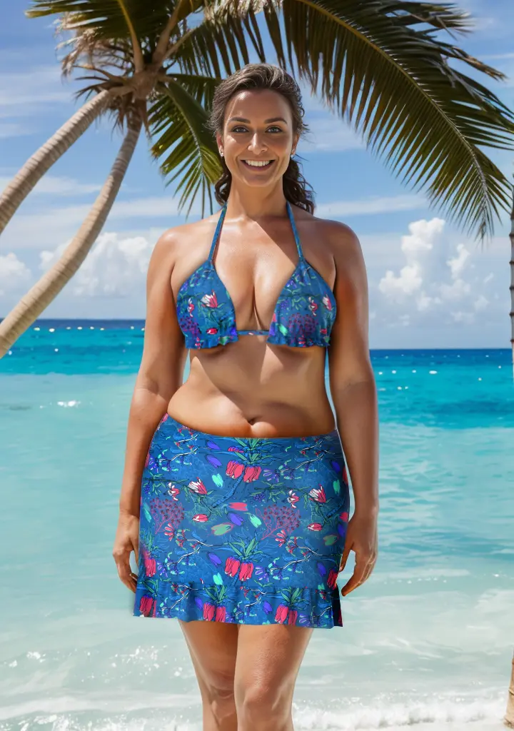 Style: Trendy Printed Tie String Skirt Swimsuit Two Piece Bikini Set