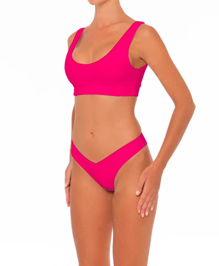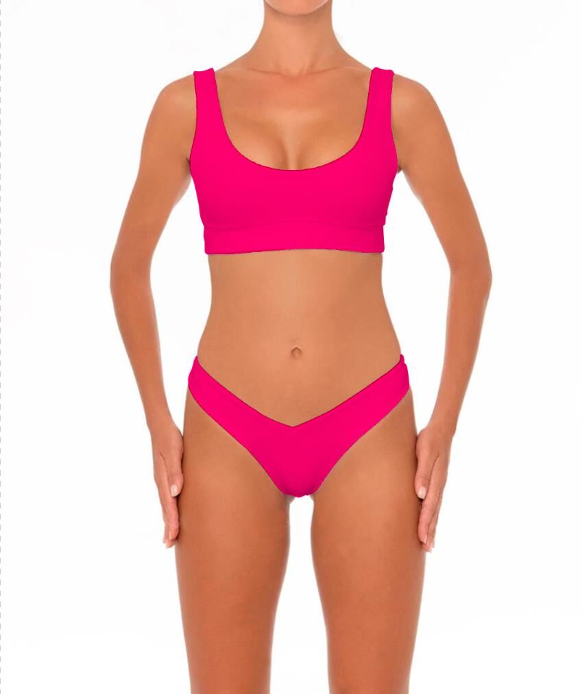 Fashion classic style pink womens bathing suits high waist triangle brief stretchy two pieces bikini.
