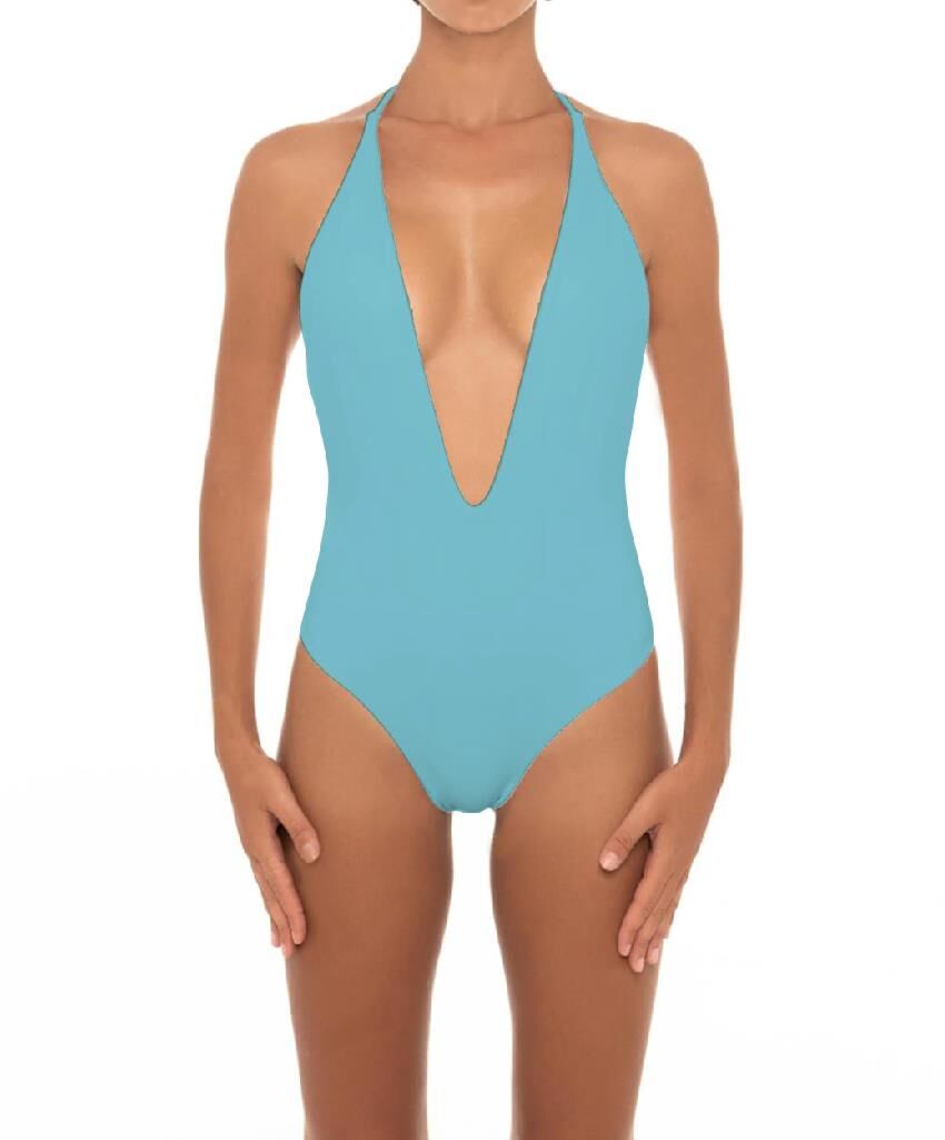 One piece swimsuits pure color wholesale blue sexy girls swimwear sexy backless bikini.